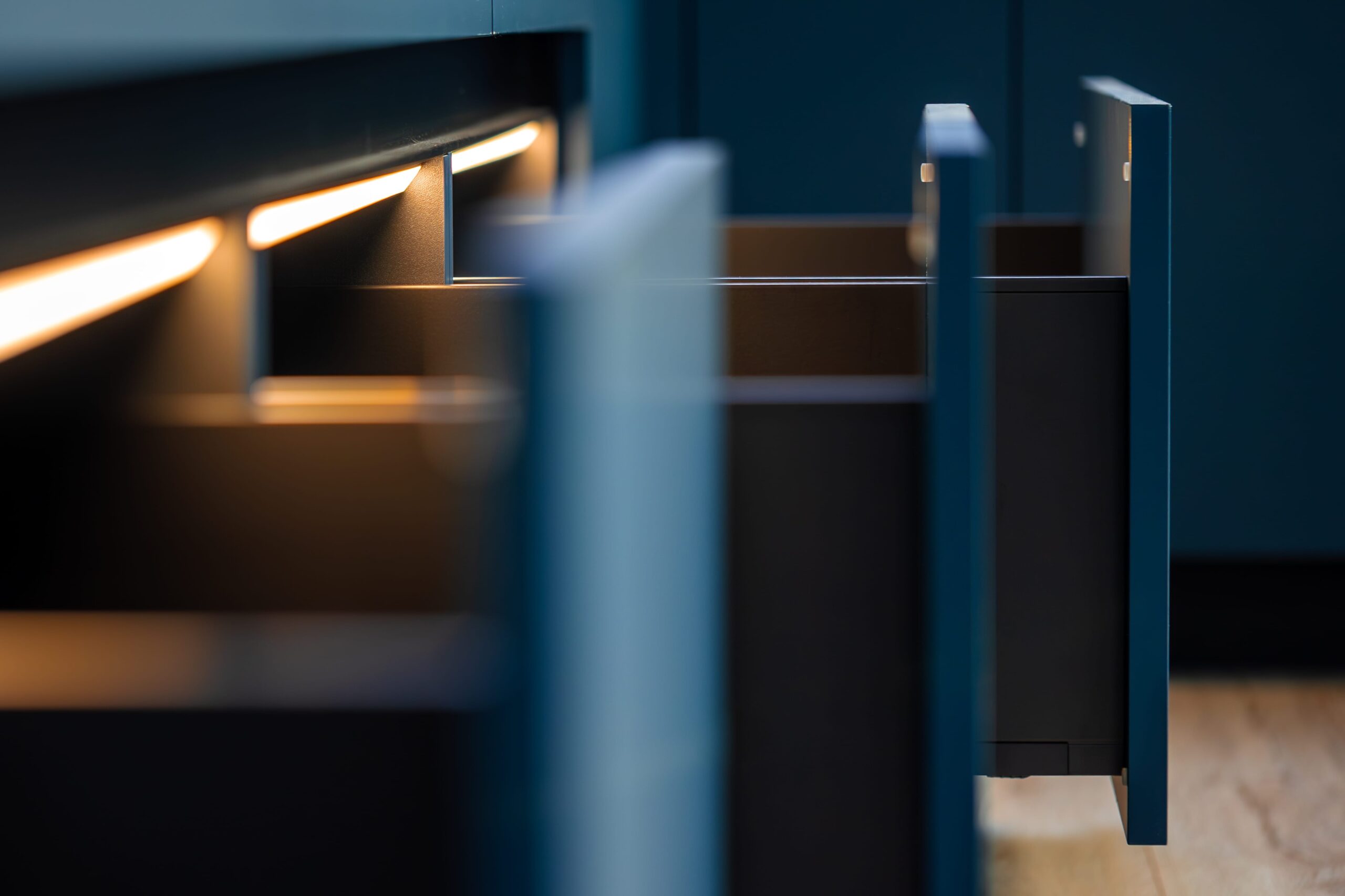 Eine unauffällig integrierte, automatisierte Lösung in der Schranktür bietet Bewohnern jederzeit Zugriff auf alle wichtigen Informationen zur Küche. Gerätedetails, Bedienhinweise und die richtigen Ansprechpartner sind so immer schnell zur Hand. Das reduziert Rückfragen und schafft Klarheit im Alltag.